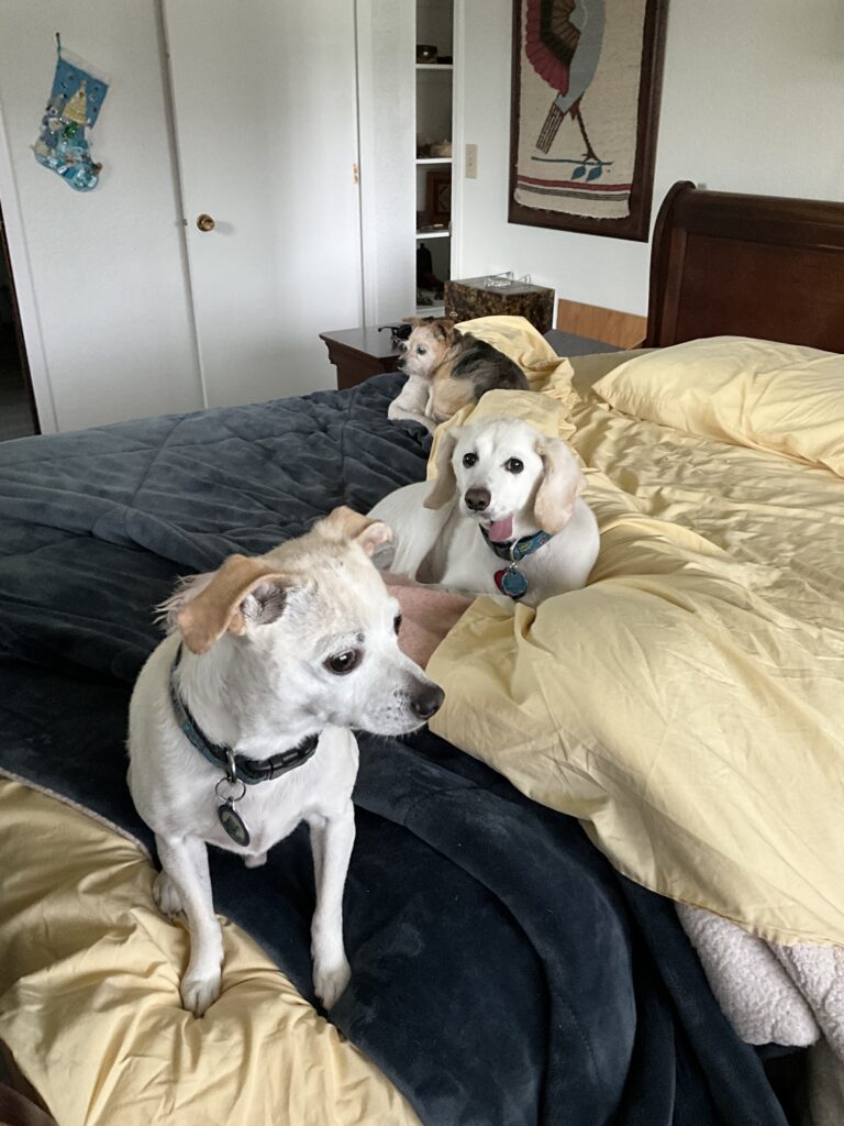 It’s not my fault. Randy looked so cute sleeping next to me on his back, legs askew, tongue hanging out. Yep, only a face a mother could love and I do love him. So I put my hand gently on his head and gave him a small stroke. He woke up.